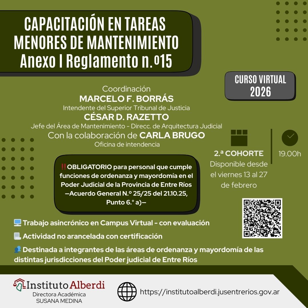 🌐 Más información: https://institutoalberdi.jusentrerios.gov.ar/events/curso-virtual-capacitacion-en-tareas-menores-de-mantenimiento-anexo-i-reglamento-n-o15/